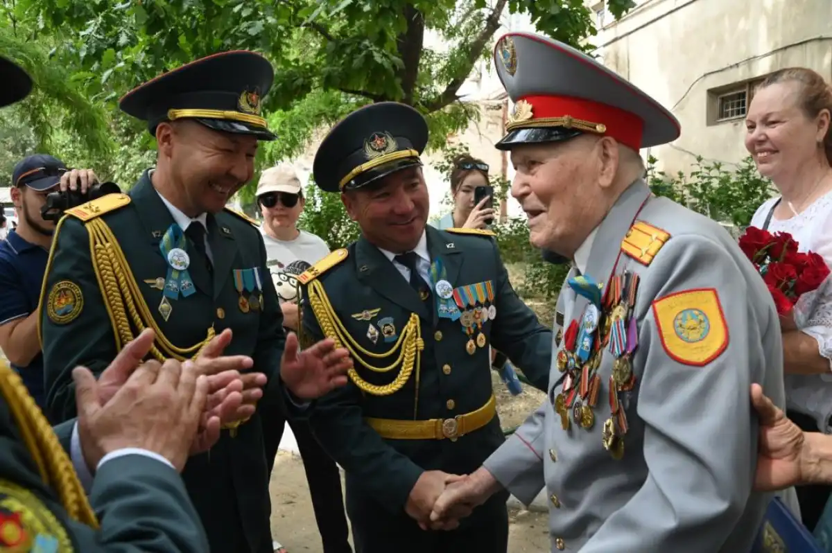 На сегодняшний день в Жамбылской области проживают всего пять фронтовиков – все они живут в Таразе. Из-за преклонного возраста они уже не могут участвовать в масштабных торжествах. Но благодарность поколений нашла способ достучаться до их сердец – строй воинов прошел прямо во дворах, где живут герои.