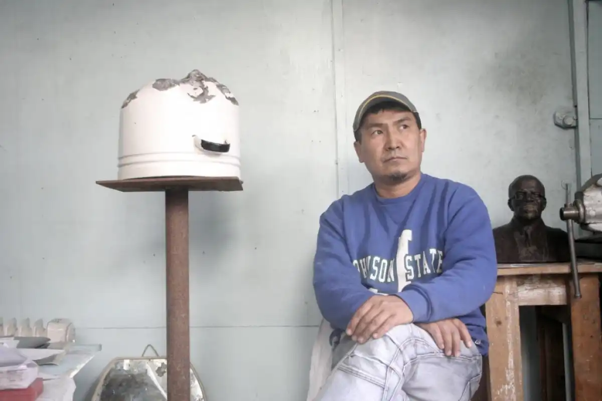 Инсталляция представляет собой копии талдыкорганского памятника первому президенту Казахстана, сброшенного протестующими во время январских событий 2022 года. Мельдибеков создал своеобразную раскадровку трех секунд падения фигуры, но расположил ее так, что создается иллюзия, будто памятник вновь поднимается.