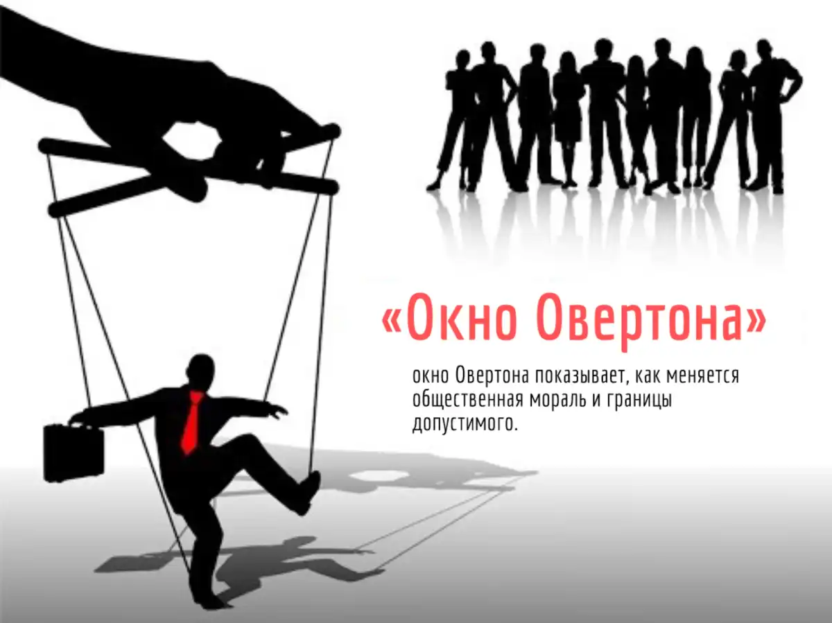 Например, американский политолог Джозеф Овертон предложил понятие «окно Овертона». По его словам, любая идея может восприниматься обществом как «приемлемая» или «дикaя», однако со временем это восприятие постепенно меняется, и то, что раньше казалось недопустимым, становится нормой.