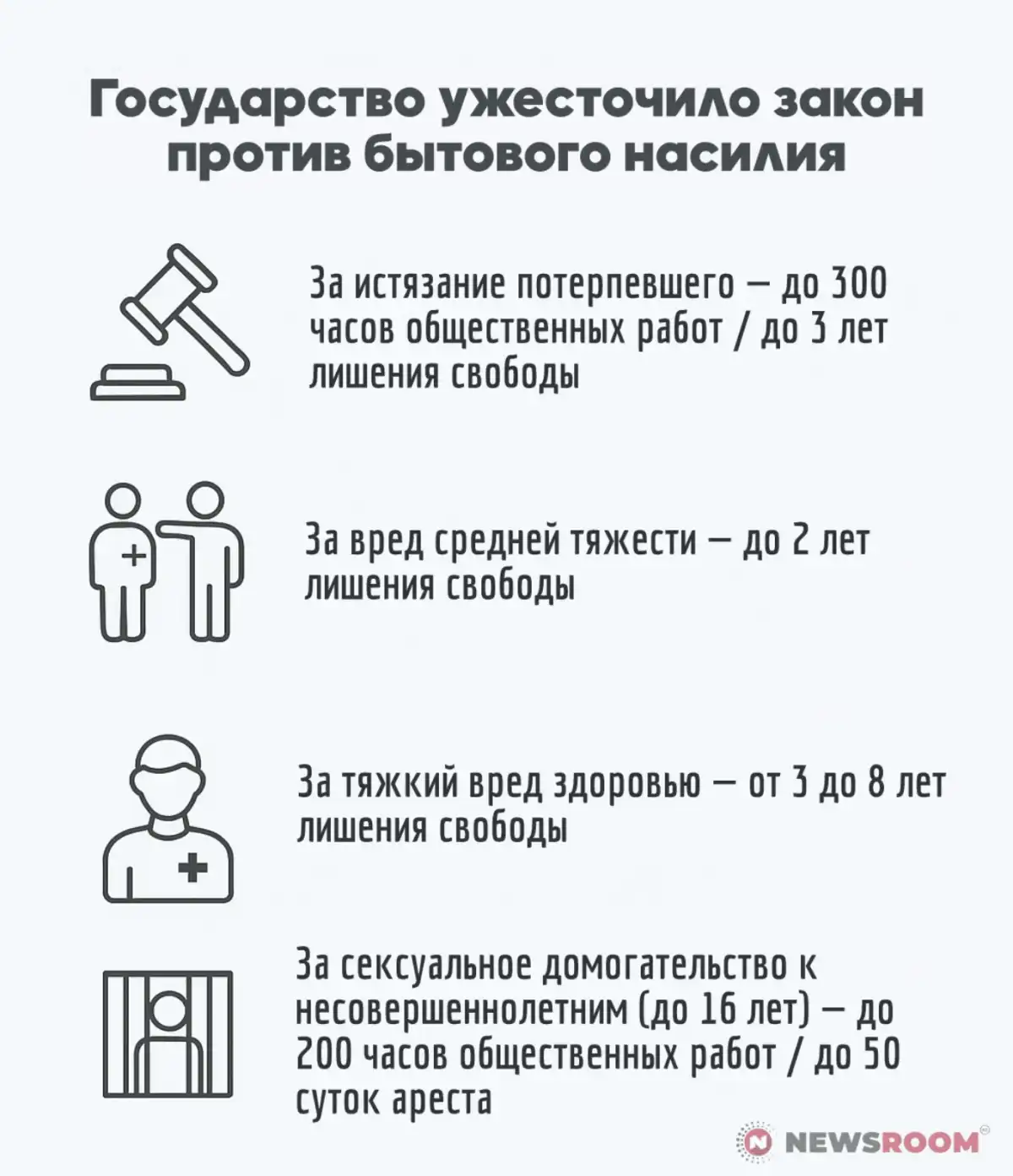 После того как в 2024 году домашнее насилие вновь было криминализировано, количество зарегистрированных уголовных дел резко выросло: если раньше регистрировалось около тысячи дел в год, то в прошлом году их стало 3382 — более чем втрое больше. Только за 2024 год в полицию поступило более 100 тысяч обращений по фактам семейных конфликтов и насилия.
