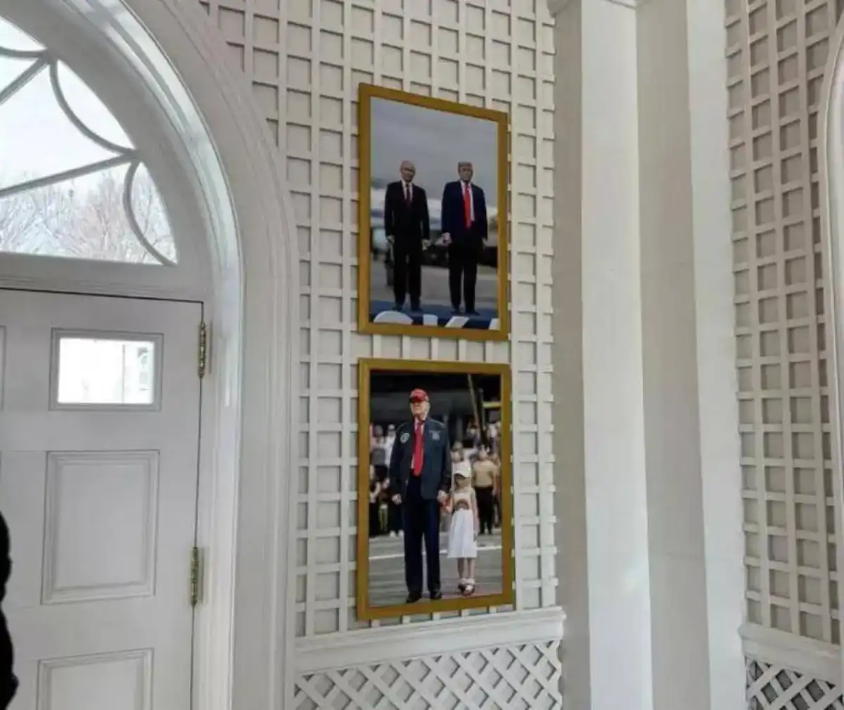 Примечательно, что под фотографией с Владимиром Путиным в Белом доме также размещён другой кадр — на нём Дональд Трамп запечатлён вместе со своим внуком, которого он держит за руку.